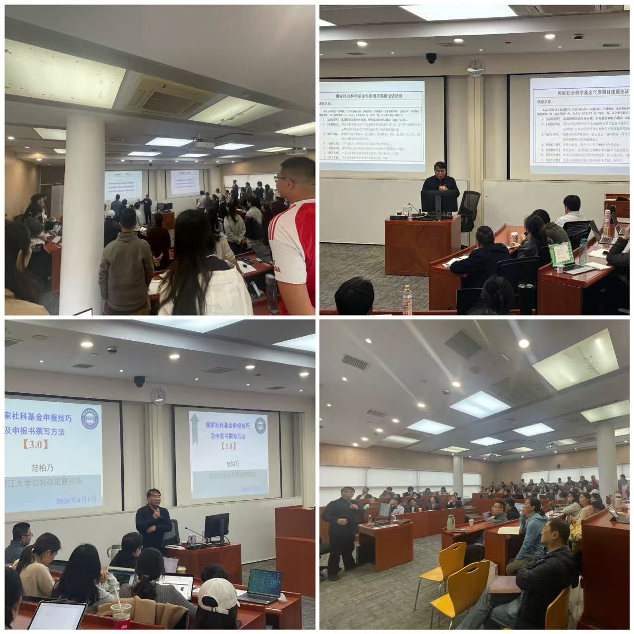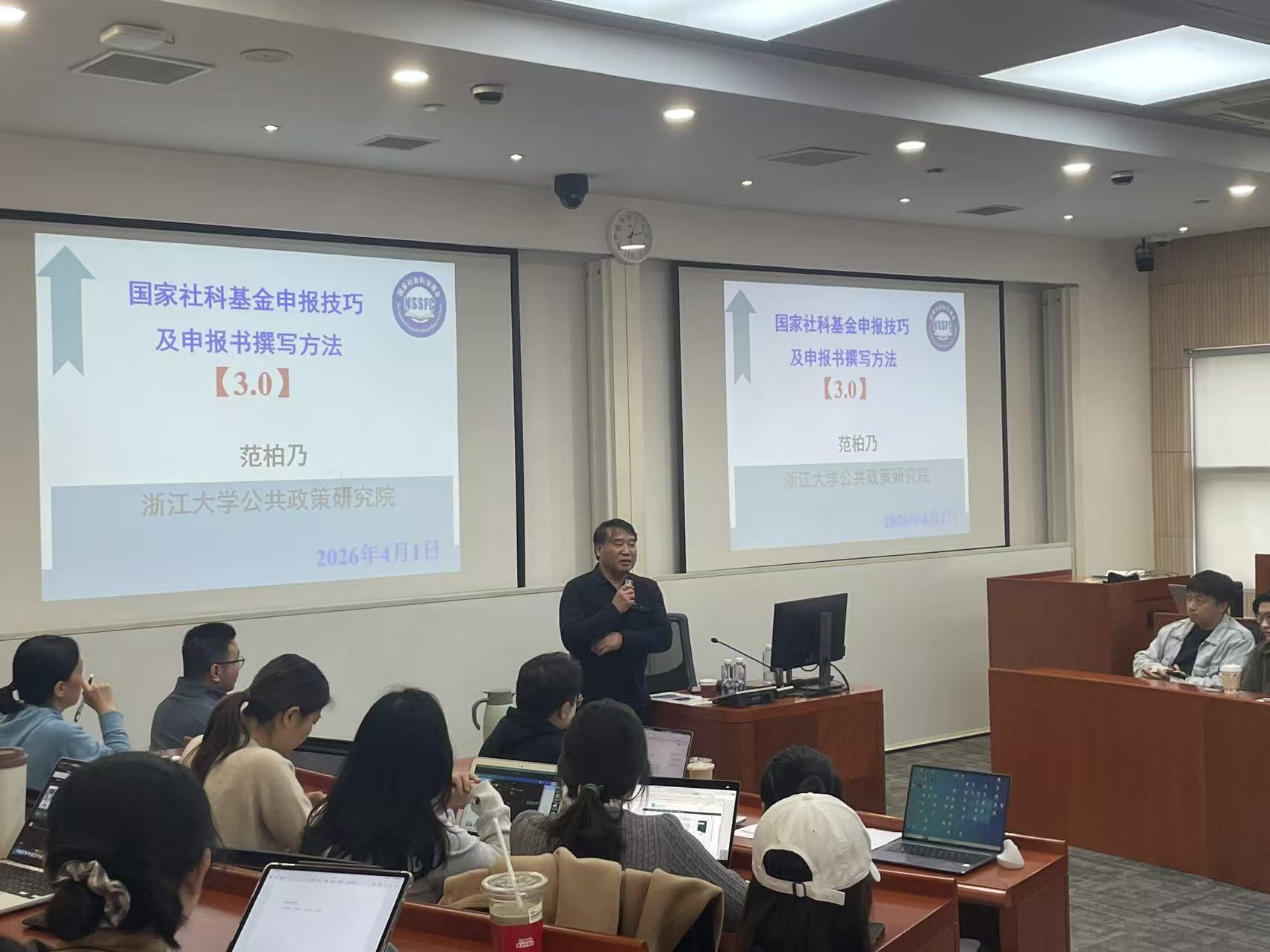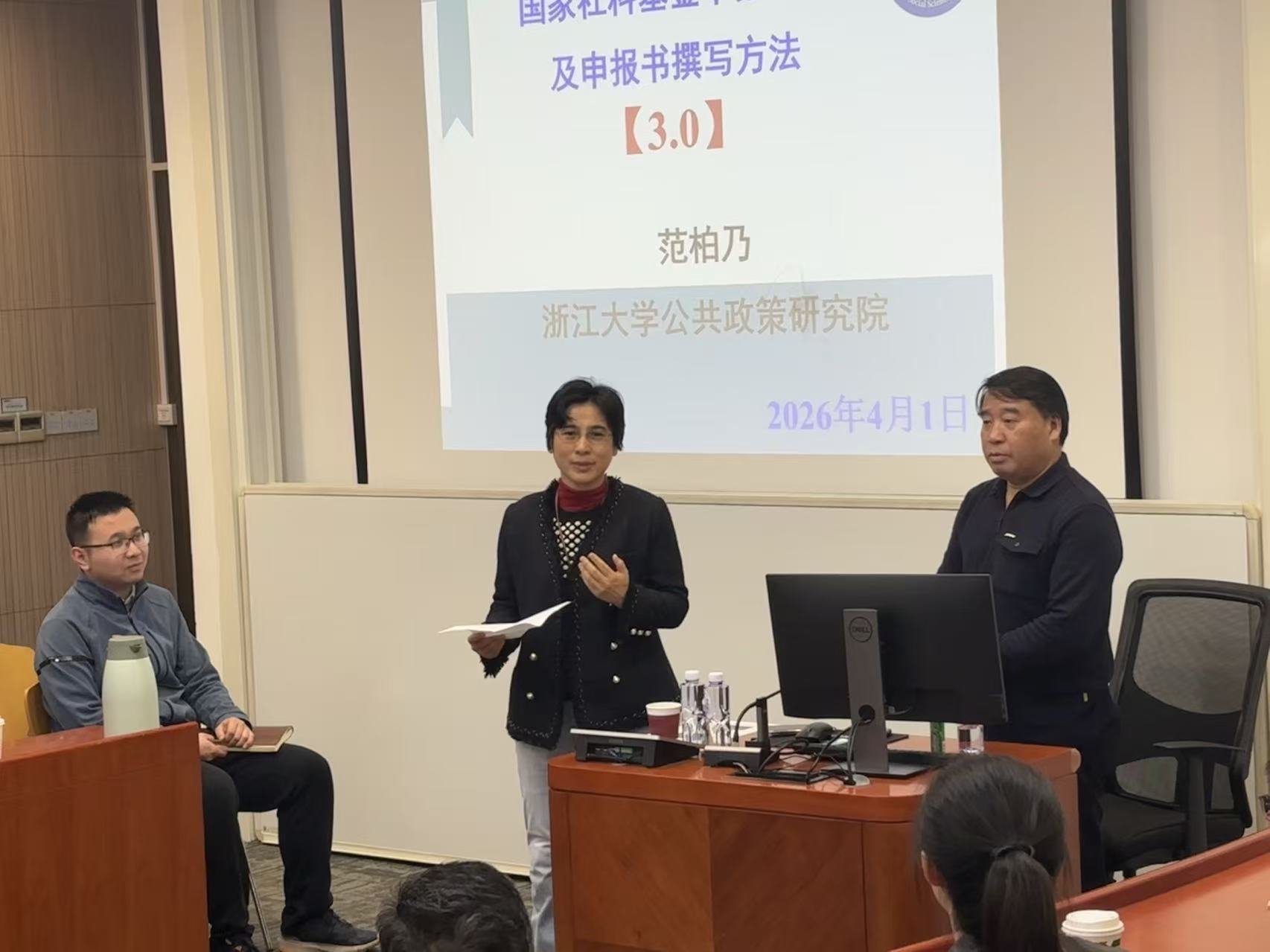 为精准把握国家社会科学基金项目申报要点与评审导向,切实提升申报质量,4月1日下午,我院举办2026年度国家社科基金项目申报辅导讲座。讲座特邀杰出校友、浙江大学求是特聘教授范柏乃做主题为“国家社科项目申报技巧及申报书撰写方法”的专题辅导,学科与科研办公室许洁老师出席活动并致辞。