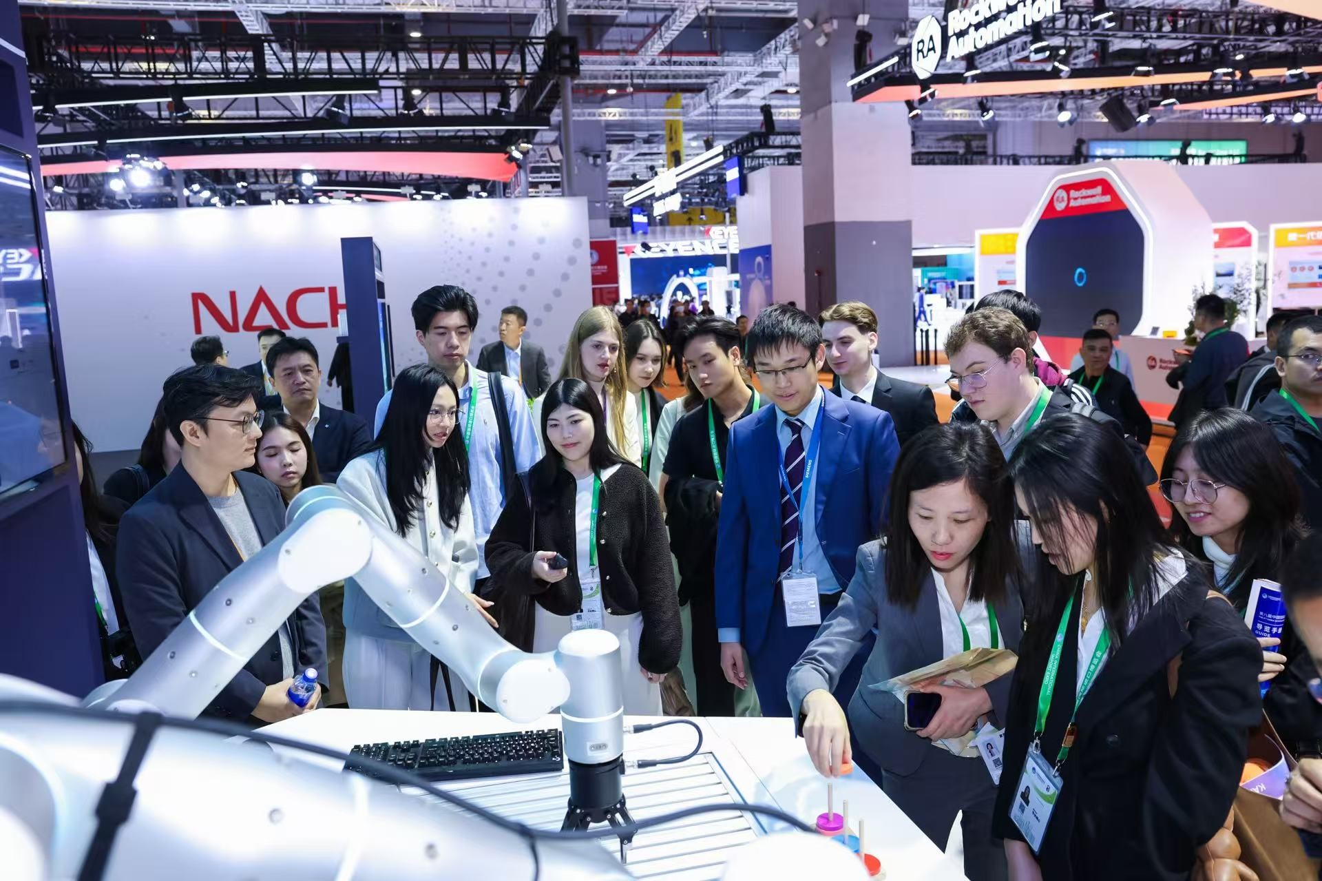 The team then visited the Siemens stand. The representatives at the stand interacted warmly with the international students and engaged in efficient exchanges, showcasing how industrial AI is empowering various industries, from automotive manufacturing to chemicals and metallurgy. Siemens and its partners presented over ten products and solutions, jointly outlining a digital, low-carbon industrial landscape. By communicating closely with company representatives, the students reflected on the integration of technology and management, and were inspired in their career planning.