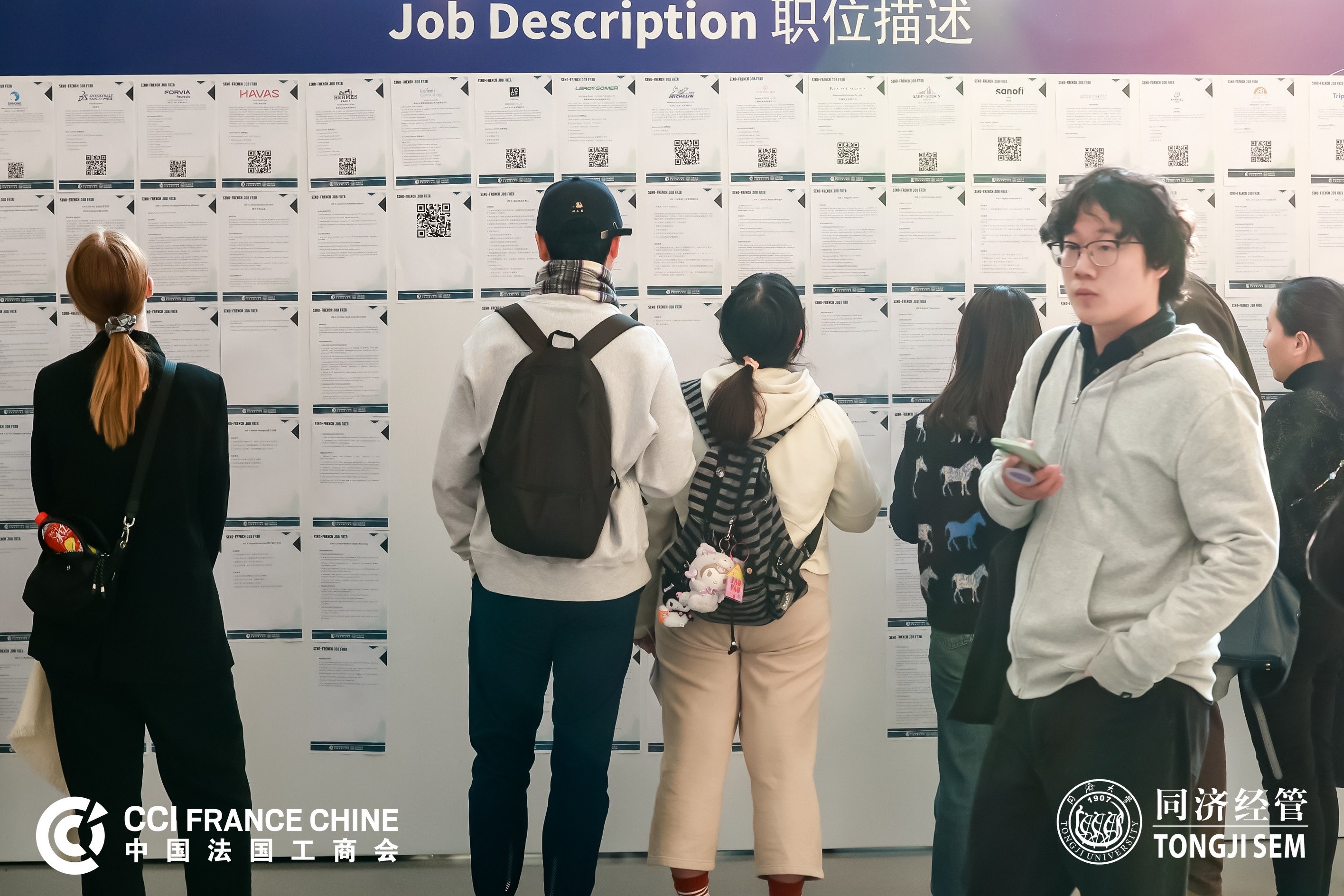 On the same day, the Sino-French Job Fair took place with great success. Nearly 30 companies presented over 150 positions across pharmaceuticals, finance, construction materials, transportation equipment, automotive manufacturing, industrial software, luxury goods, and more. The event attracted over 400 students and job seekers, providing a direct and effective bridge to employment.