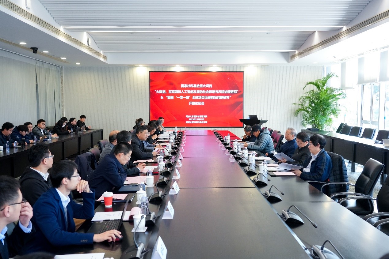 Recently, a joint inception meeting was successfully held for two major projects of the National Social Science Fund (NSSFC): “Research on the Social Impact and Risk Governance of Big Data, Internet, and Artificial Intelligence Development,” led by Chief Expert Prof. SHI Qian from Tongji SEM, and “Research on Frontier Issues in China’s Global Project Governance for the ‘Belt and Road’ Initiative,” led by Chief Expert Prof. LI Yongkui.
